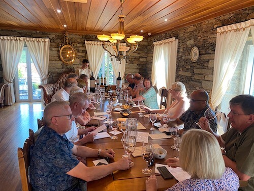A superb dinner ensued: pate en croute, cod with fava beans, pan fried duck and a delicious meringue tart. Symington estate wines and Grahams 10 Year old and 20 Year old Tawny port accompanied the meal. A great final meal, though not the final event of the tour…