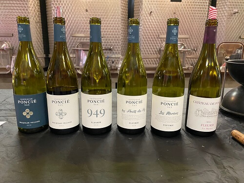 No time to rest as our final stop of the days was only ten minutes away in Château de Poncié. This is a truly historic property where records go back to 949 when it was a Roman villa called Villa Lanciago. The charming Robin Allouin took us for a walk to view the Fleurie vineyards which contrasted nicely with our discussion earlier in the morning.