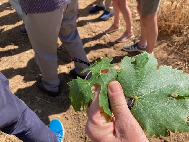 Gonzalo, who Tim met for the first time during his visits last year, is a marvel! He gave us the most wonderful experience, explaining what was happening in the Bocarrage vineyard beside the winery, comparing the leaves and growth of Tinta del Toro (the genome of Tempranillo grown in the region) and Garnacha. The vines were spaced much more widely than those of Ribera, reflecting the poorer soils and lack of water.