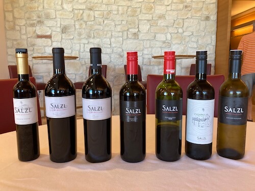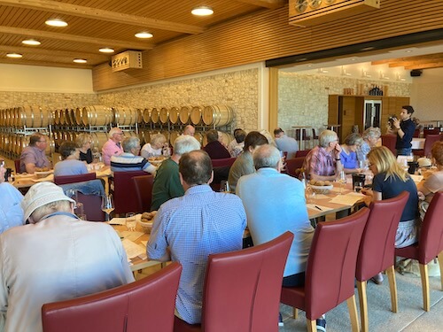 In the entrance hallway of the winery we sat at a long table, and tasted a lovely flight of wines, from grape varieties we rarely drink – but should! Heidi and Johannes described the challenges of winemaking in the area, particularly for the late harvested botrytised grapes, which may not be harvested until November, and require a high level of selection in the vineyard. In 2019 starlings ate almost the entire crop of grapes destined to make botrytised wines!
