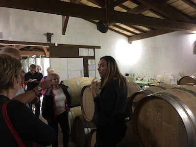 The estate is now owned by four local Bordeaux friends, who handily have surnames like Peugoeot.  It is entirely organic, no pesticides have been used since 2004, and they are proud of the biodiversity in their vineyards, and their organic garden (our vegan tour member enjoyed some of the 482 varieties of heritage tomatoes for his first course).  98ha of vines are bounded by forests, roads or the village, and they are on a hill so suffer no drift of sprays from other estates.