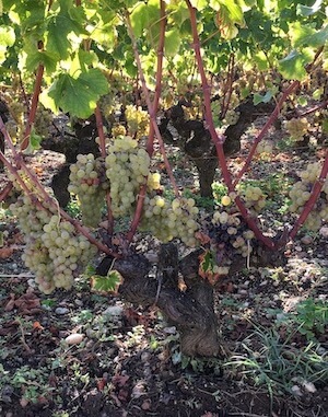 The process happens grape by grape, and in Sauternes and Barsac, which command the highest prices, that is how they are harvested, grape by grape, with many ‘passes’ through the vineyard before the entire crop is picked.  The average yield for such sweet wines in Bordeaux is around 25hl/ha (half that for dry wines made from the same grape varieties).  The best Sauternes producers make a glass of wine per vine (versus one bottle/vine in quality dry wines in Bordeaux).  Across the Garonne, the wines of Loupiac, Cadillac and Sainte-Croix-du-Monte do not enjoy such high prices so can’t afford harvest in this way, and are therefore picking whole bunches with an ‘average’ level of rot, creating a sort of vicious circle of lower ‘quality’ and lower prices that they cannot break out of.