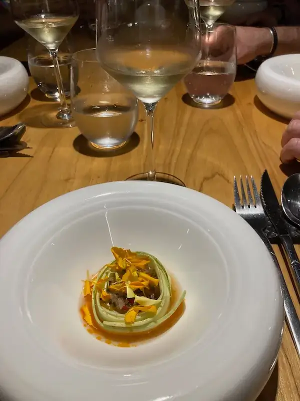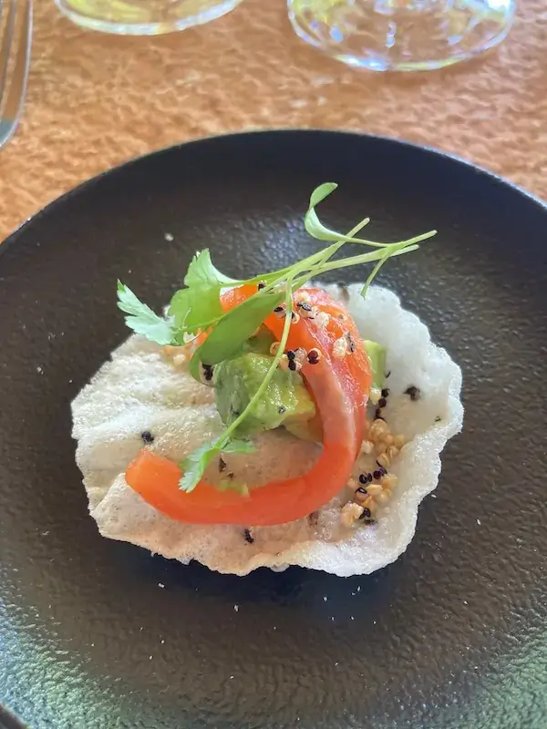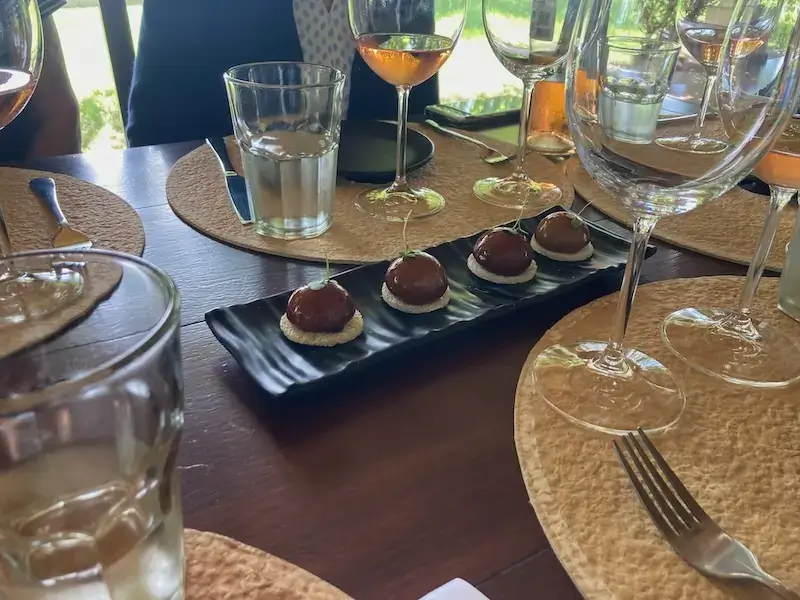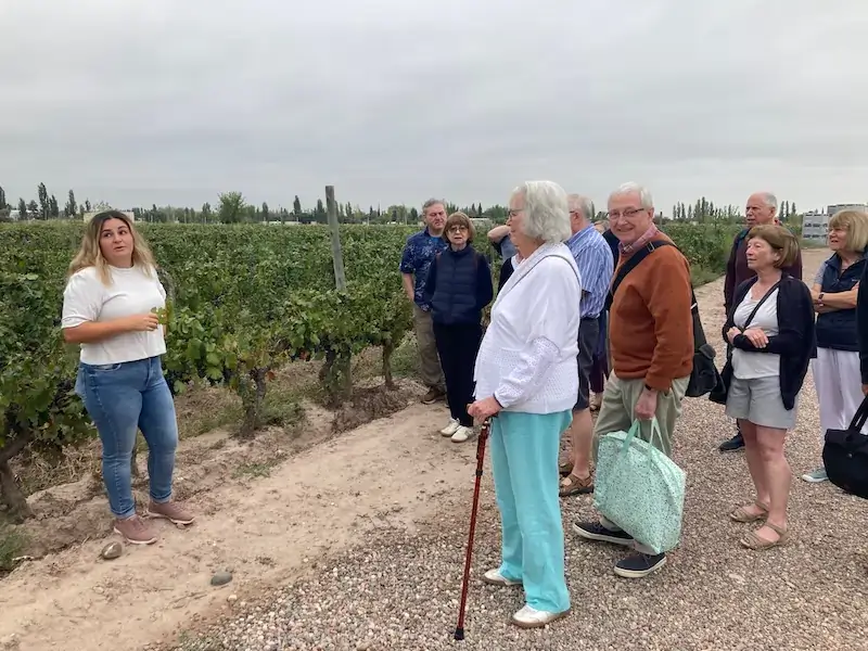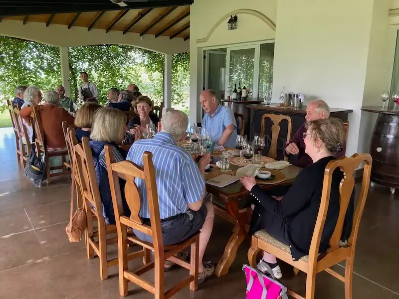 The we jumped back in the coach for a hop across the road to their restaurant among the vines, where we had a light lunch of freshly prepared tapas on the verandah, accompanied by a rosé, a Cabernet Franc, a Malbec Reserva and their Icon wine Victorio Altieri. This 2021 vintage had won a Platinum Medal at the Decanter World Wine Awards, and it freshness, concentration, balance and finish were superb.