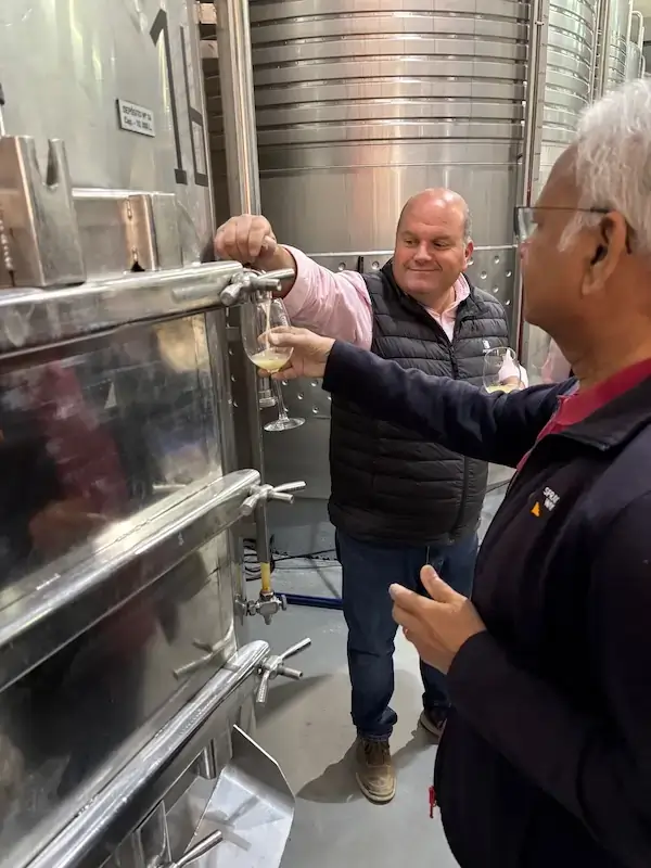 Starting off in the vineyard, we tasted grapes, saw the particularly sandy soils and ruminated on different leaf shapes. Into the winery and an extensive barrel and tank tasting commenced. September is the perfect time to visit as the grapes are pressed, wines are fermenting and we could taste from the tank at different stages of completion. This was absolutely fascinating and Gonzalo conveyed so much information with both passion and clarity