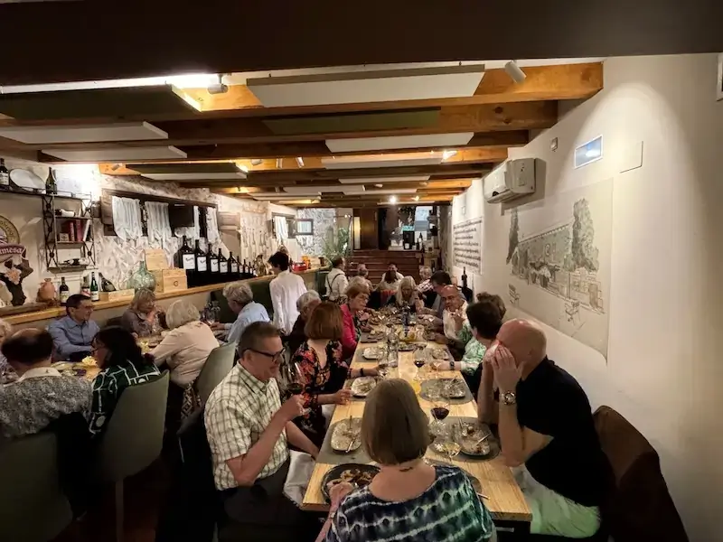 From the cellar, we headed into the restaurant for what was meant to be a light lunch…..but as ever in Spain, all sorts of appetizers came out followed by a perfectly cooked piece of cod and a crema Catalan dessert.