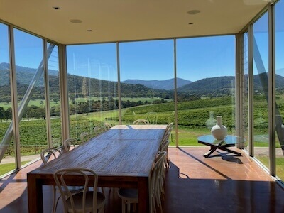 A couple of hours north of Orange is the town of Mudgee. Warmer than Orange, being at lower altitude, there is a particular focus on Spanish and Italian varietals, though as soon as one tries to make a generalisation, an exception appears – the Stein family from Germany are particularly well known for their Riesling! I had a brilliant tasting at Vinifera with Sam, whose father planted grapes in 1994, and was luckily dissuaded from planting Pinot Noir. Their organically farmed vines include Tempranillo, Garnacha and Graciano, and it was lovely to taste these wines in a new home, following the Rioja visits we took last year. The Tempranillo was netted, presumably because it is early ripening it appeals to birds earlier than other varieties. I also visited Logan Wines, whose tasting room is to die for, First Ridge, who have planted Italian varietals, and Lowe, who have taken experiential tasting to another level!