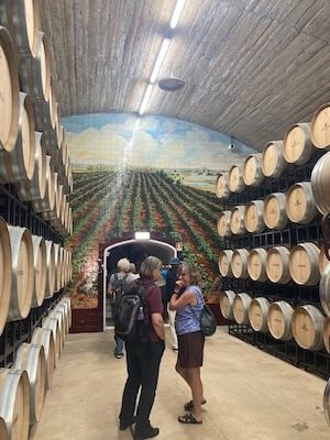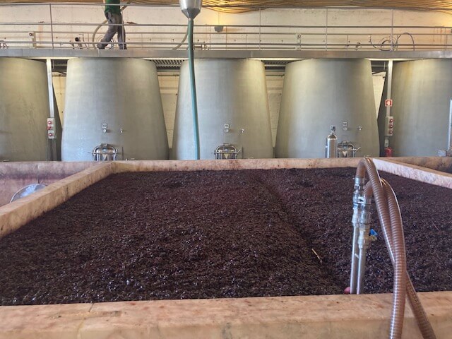 We skipped through the winery past the equipment we normally see, stainless steel tanks, pneumatic and vertical presses, French and American oak barrels, plus some stainless steel lagares, used for foot treading of grapes for the top wines.