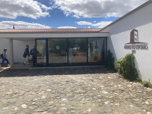 A tour round their magnificent winery helped lunch go down. We saw lagares made from local marble, some huge concrete ‘tulips’ used for fermentation and maturation of fresh styles of wine, a few Talha, and rows and rows of barrels in their tiled cellar. We were inspired and refreshed, ready for our tasting, led by Joanna. This was of the white and red of each of three flagship ‘brands’, Montel Velho, Colheita and Esporão Reserva. All were blends of the varieties we are becoming accustomed to, international ones such as Cabernet Sauvignon and Syrah, Portugese ones such as Touriga Nacional, and local varieties such as Arinto. The wines were lovely and it was a great end to a lovely day.