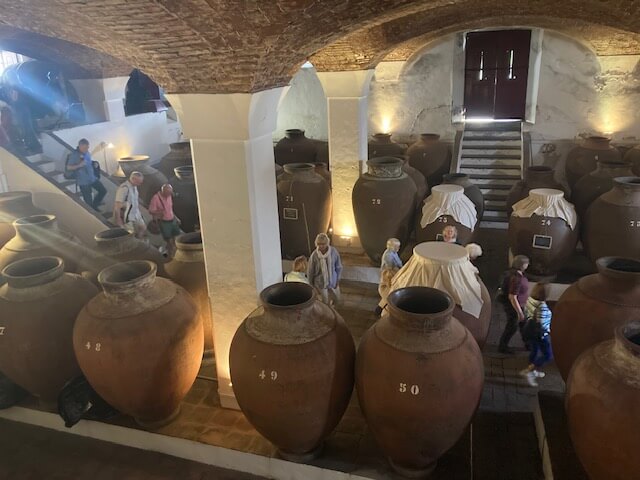 We could see several of the Talha contained either fermenting must or maturing wine, and were able to examine the interior of a couple of the pots, which had helpfully got broken at some point. It was an amazing experience, unlike any winery we have visted before.