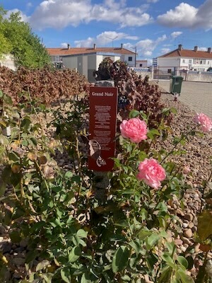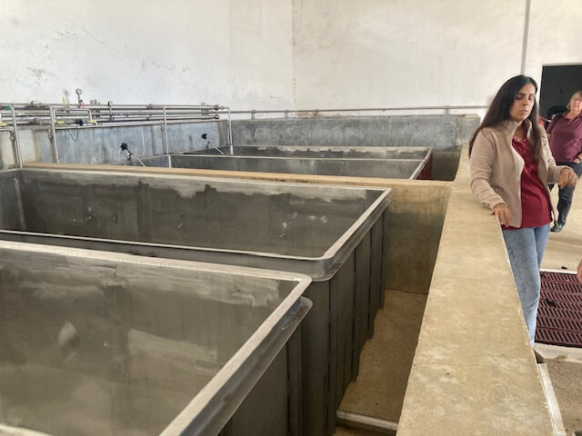 Our guide was Sofia, and we started in the small garden where there was a row each of the three main varieties they grow: Trincadeira and Aragonés (Tempranillo), which we were already familiar with, and Grand Noir, a relative of Alicante Bouschet (created by the same oenologist) and another teinteurier (red-fleshed) variety.