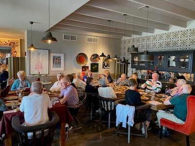 Lunch now beckoned. Tomato and feta salad, dolmades, spinach pie, beef pasta and an utterly delicious orange dessert was on the menu – all washed down with more estate wines. A fabulous experience at another top winery in Nemea.