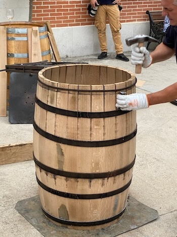As it was their anniversary day, Piedra had organised for a local cooper from Burgos to make a barrel right in front of our eyes. This was terrific as we saw at first hand just what hard work it is and very impressive to see it achieved in just under an hour!