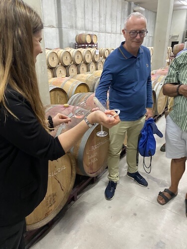 From the vineyard into the cellar with a glass in hand, we tasted from the tank a white blend, (Verdejo, Albillo and Malvasia) and then tasted the same wine in barrel. It was fascinating to taste the difference and see the effect of the wood.