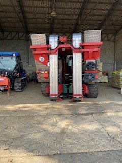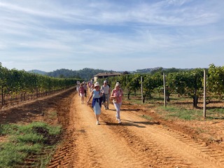 We walked up to the Montessora vineyard, which has iron rich alluvial clay soil.  On the way we had a good look at the mechanical harvester, and in the vineyard we saw the stalks from which the berries had been shaken still attached to the vines.  This was a first for a lot of us!  Chiara explained that most of the vineyards are machine harvested, and are planted to accommodate the width of the tractor that tows the harvester, though some of the steeper sites are hand harvested.  She told us that only last week they had had a visit from the authorities who manage the DOCG, ensuring that they were complying with rules relating to the amount of grapes they can harvest to make under the Gavi name.