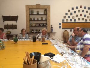 We stayed in the vicinity of Marsala on our first full day as we headed over to Curatolo Arini. This family owned estate dates back to 1875 and fifth generation Alexandra Curatolo greeted us. She handed over to the exuberant Carlo who is in charge of sales and we were recipients of a whirlwind of information: social history, the origins of Marsala, current issues facing the Sicilian wine trade and much more. We tasted through five whites and four reds including Grillo, Zibibbo, Inzolia/Cattarratto blends and different versions of Nero d’Avola before moving on to a quite amazing Marsala masterclass. Given that Englishman John Woodhouse established the Marsala style in 1773 we were slightly ashamed about how little we knew of its history and production methods. Carlo took us through all the details with great aplomb as we tasted through Semisecco, Superiore, Dolce and a Vergine 1995 followed by an amazing 30 year old “forgotten” Marsala.