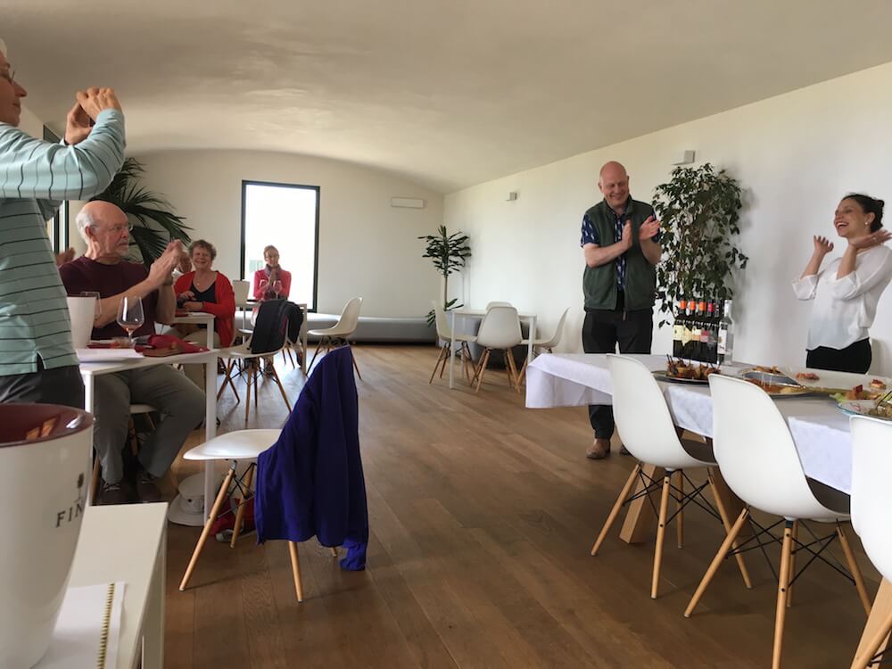 Once we had finished the tasting we returned to the wines while we tucked into a lunch local of meats and cheeses including ricotta made that morning, caponata, various bruschetta and pizze, olives and olive oil. All the wines went beautifully.