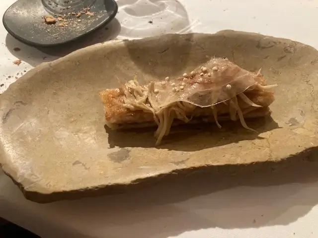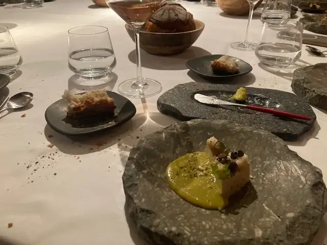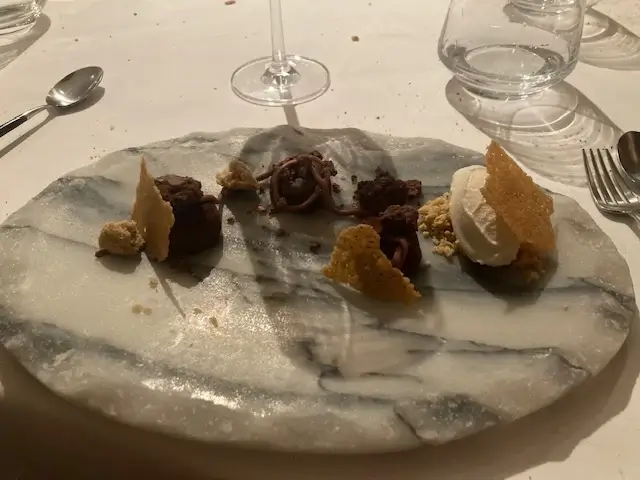 Tim has been bringing people to El Trigo since 2012, since when it has gained a Michelin Star. This was a spectacular dinner, of seven courses, which I won’t attempt to catalogue, but I took a picture of each of them (my pudding shot wouldn’t upload unfortunately) and they were all delicious. We ran the gamut of vegetables, seafood and meat, everything was gloriously fresh and delicious. With a very good rosado from Cigales, and a local red Tinto del Pais from 2011 which was showing some real evolution.