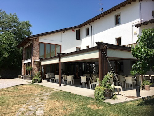 Tim had alerted us to the long drive, and we were all ready at 8am. Towards 11am, after a lot of very flat scenery and a very quick coffee stop, we suddenly saw hills. Then we were driving up into the Colli Orientale de Friuli (eastern hills of Friuli) to arrive at the one of the most picturesque visits we have ever done – the Abbazia Rosazzo.