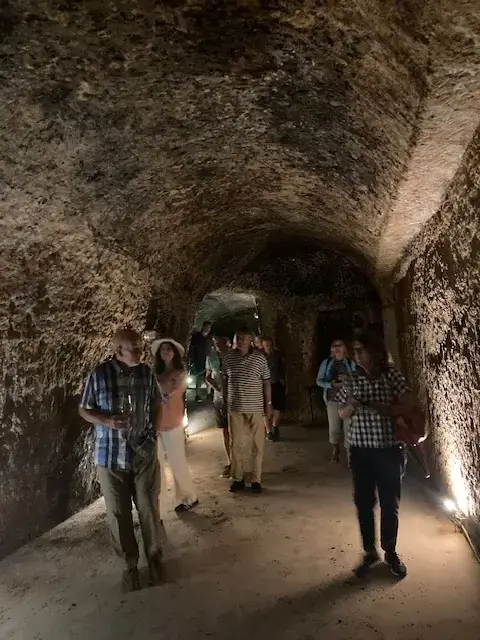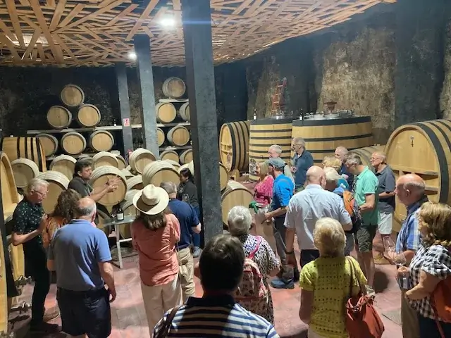 We then descended another flight of stairs and wound our way round the original cellars, which had housed the tanks where wine fermented and matured over winter, and nowadays is used as a super cool warehouse.
