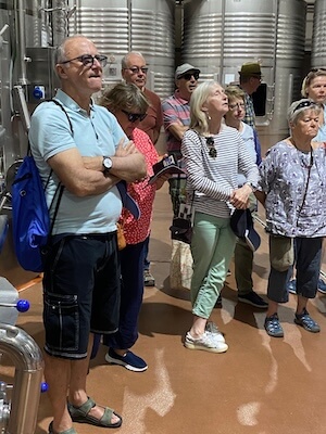We were lucky to be hosted by Lluis – the technical director – and he gave us a terrific insight into the vineyards, terroir, stony soils, effects of climate change and the future of Cigales. We wandered round the very impressive winery and tasted some juicy Syrah from the tank.