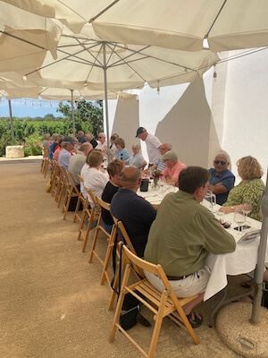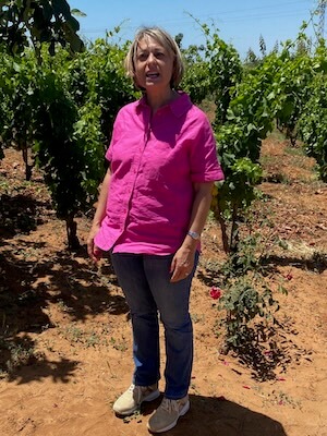 Our first stop was to the family estate of Arianna Occhipinti. Arianna set up the estate back in 2000 with just one hectare of rented Nero d’Avola. It was clearly a success as we fast forward to 2024 and she now has 30 hectares alongside pear trees, organic vegetables, rare wheat and carob. Marica hosted our event with her customary aplomb as we started our tour in the vineyard and received an excellent insight into the organic and biodynamic philosophy of the estate.