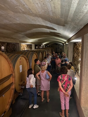 It was just a ten minute drive to Tenuta Bastonaca, another wonderful family estate right in the heart of the Vittoria area. Owner Silvana greeted us with great warmth and took us round the family estate. They are organically certified and have built an excellent reputation throughout Sicily and only distribute their wines to top restaurants and wine shops. We listened to classical music in the barrel cellar – they firmly believe the musical chords enhance the maturing wine.